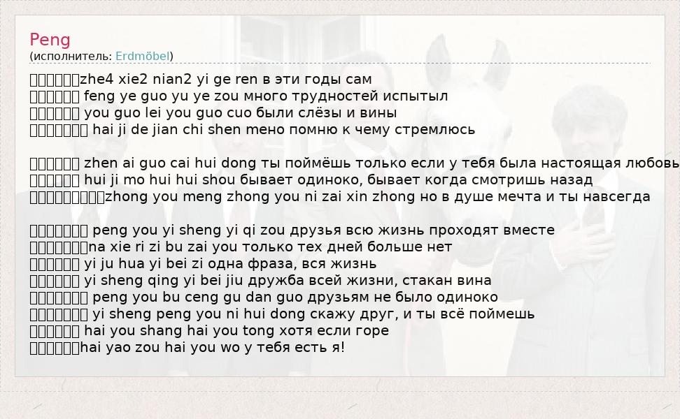 朋友不曾孤单过 peng you bu ceng gu dan guo друзьям не было одиноко