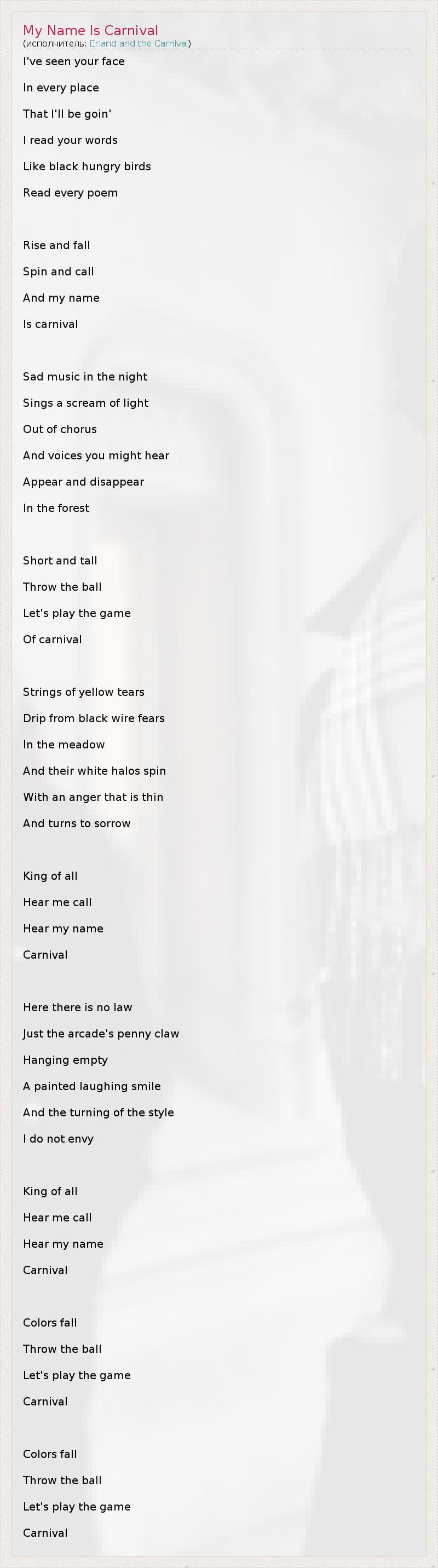 А как ты думаешь, о чем песня "My Name Is Carnival" ?