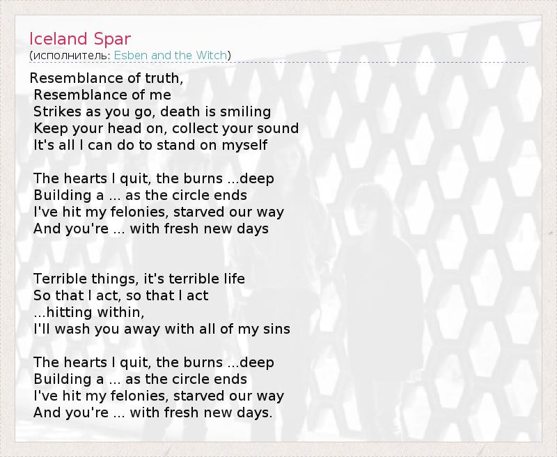 А как ты думаешь, о чем песня "Iceland Spar" ?