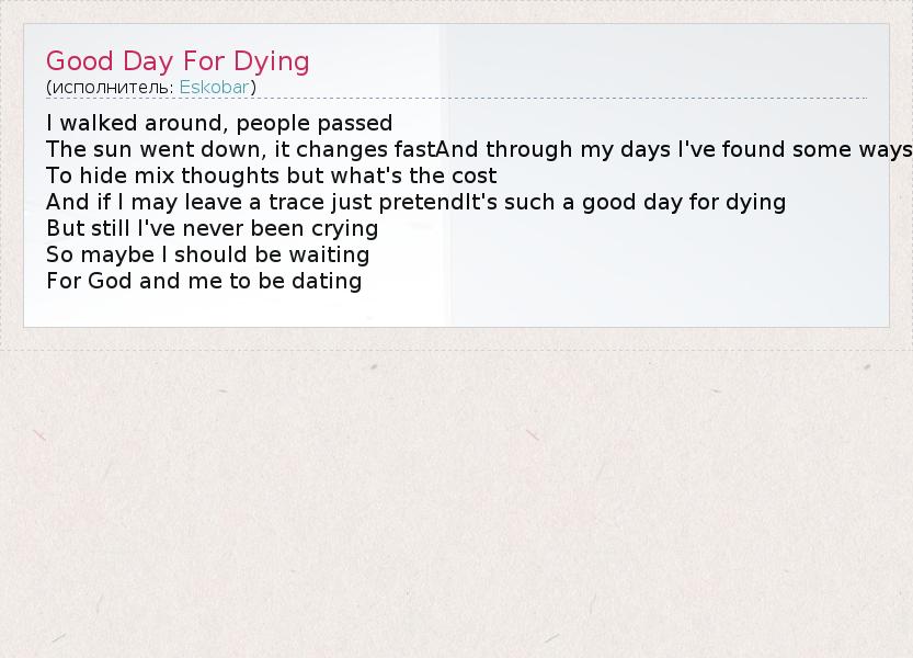 А как ты думаешь, о чем песня "Good Day For Dying" ?