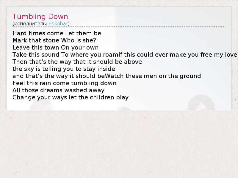 А как ты думаешь, о чем песня "Tumbling Down" ?