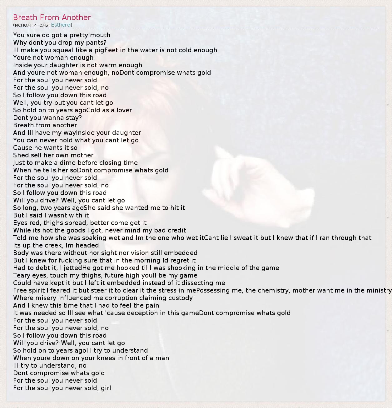 А как ты думаешь, о чем песня "Breath From Another" ?