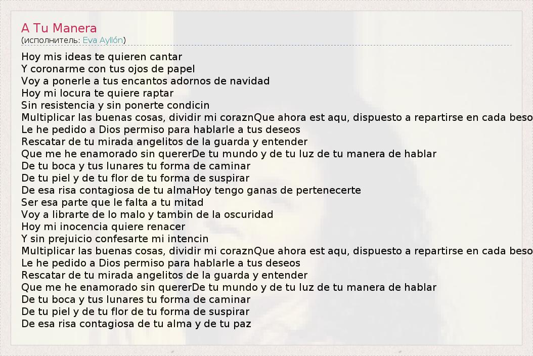 А как ты думаешь, о чем песня "A Tu Manera" ?