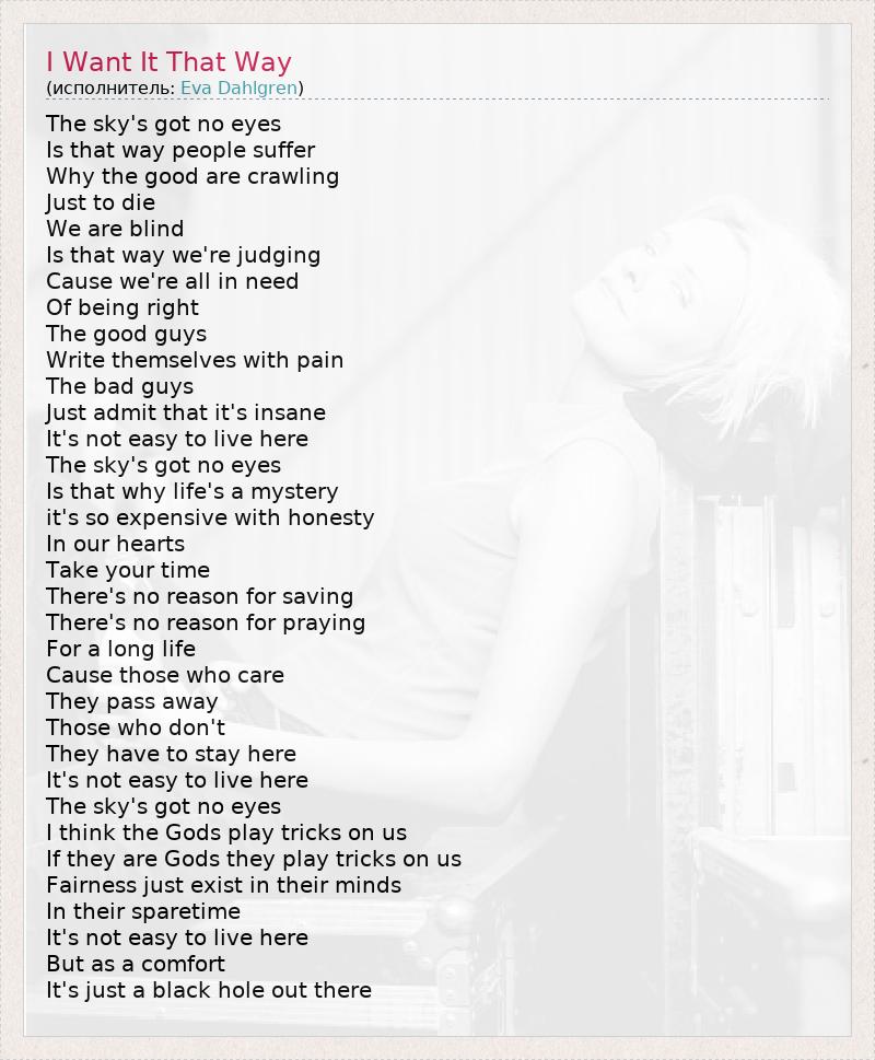 А как ты думаешь, о чем песня "I Want It That Way" ?