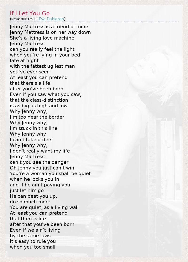 А как ты думаешь, о чем песня "If I Let You Go" ?