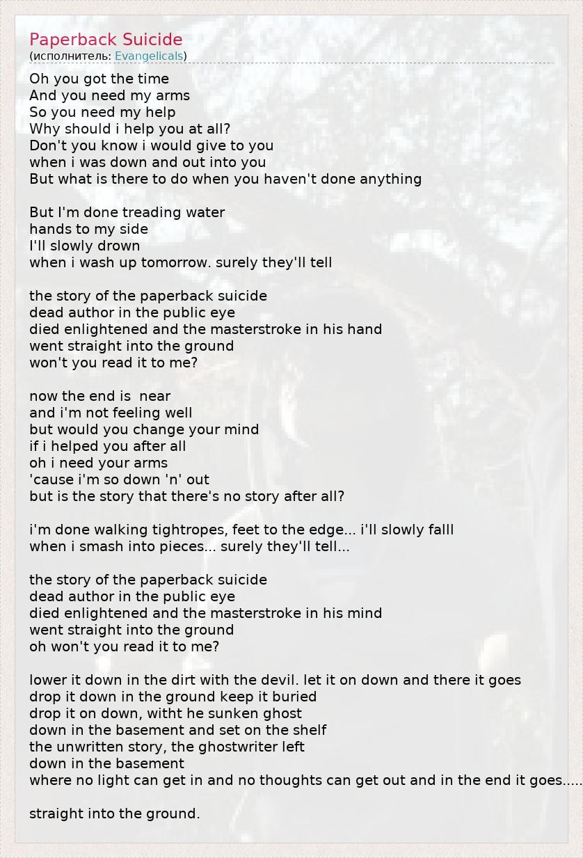 А как ты думаешь, о чем песня "Paperback Suicide" ?