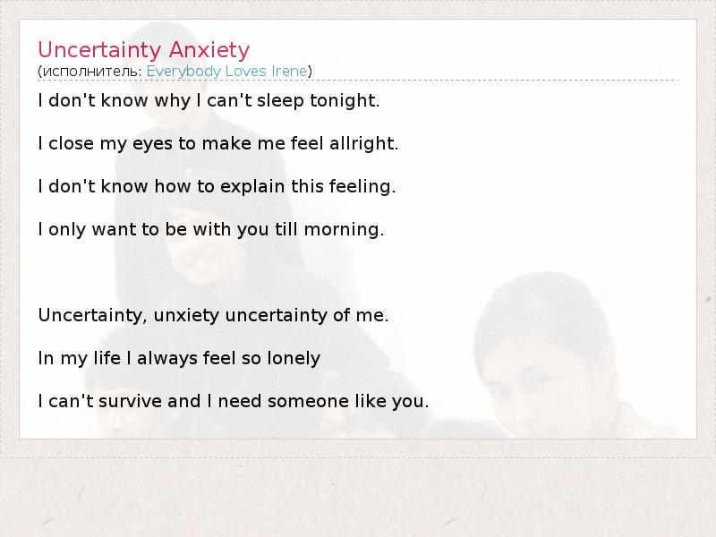 А как ты думаешь, о чем песня "Uncertainty Anxiety" ?