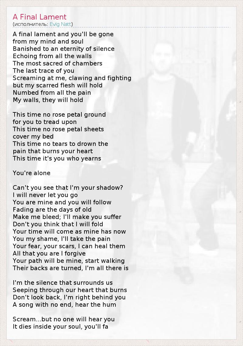 А как ты думаешь, о чем песня "A Final Lament" ?
