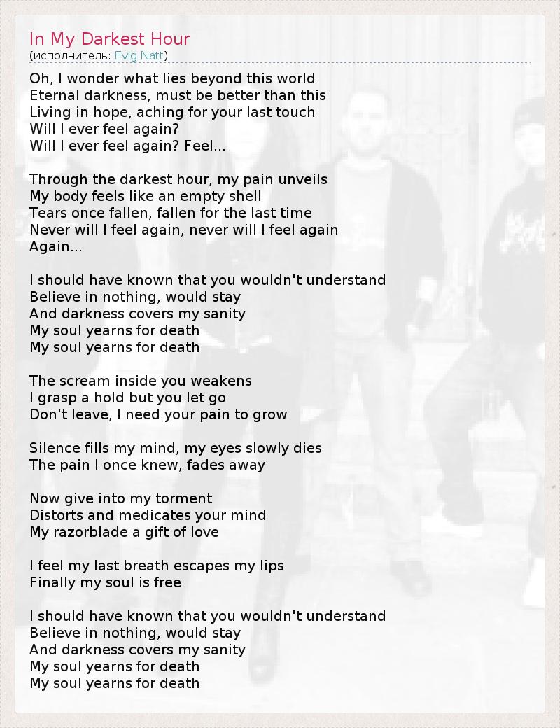 А как ты думаешь, о чем песня "In My Darkest Hour" ?