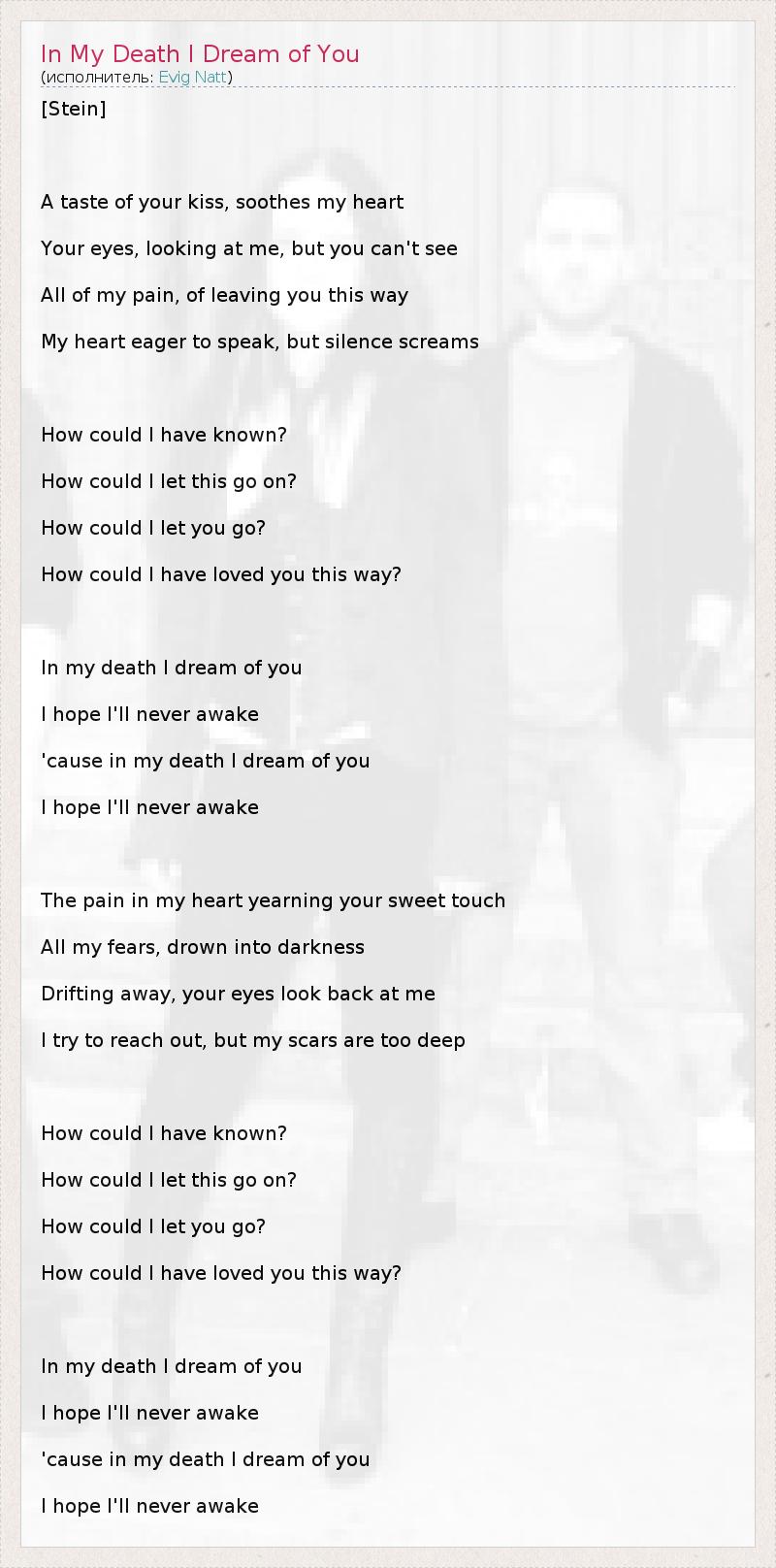 А как ты думаешь, о чем песня "In My Death I Dream of You" ?