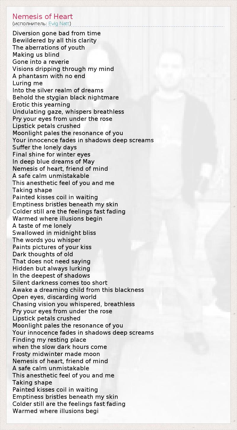 А как ты думаешь, о чем песня "Nemesis of Heart" ?