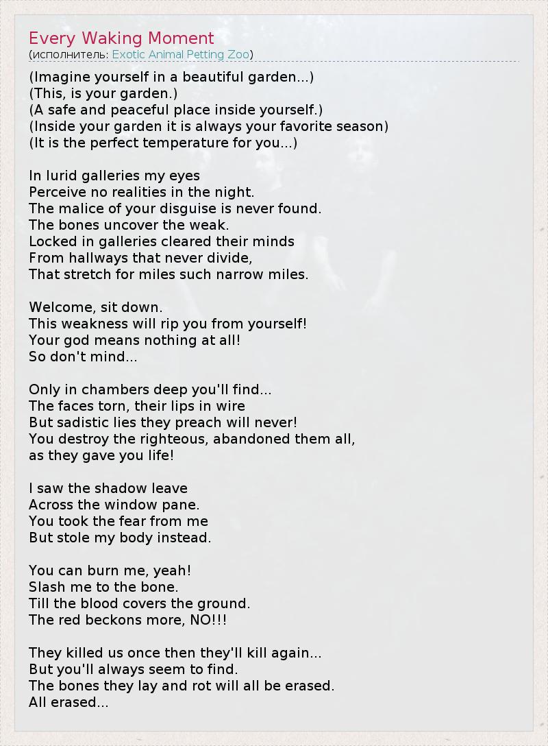 А как ты думаешь, о чем песня "Every Waking Moment" ?