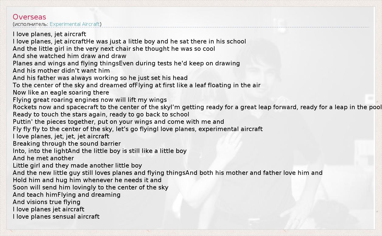 Это интересно:Годом рождения техасской группы Experimental Aircraft (или ExAir) считается 1997-й, когда в Остине познакомились Рэйчел Стэггс (вокал/гитара) и Ти-Джей О`Лири (гитара/вокал). Вскоре к ним присоединились Марк Смит (бас) и Джейсон Фергюсон (ударные), и квартет начал выступать на местных концертных площадках. Одноименный дебютник вышел в 1999 году. Музыка, которую играют ExAir - shoegaze, dream pop, с элементами post-rock и... продолжение