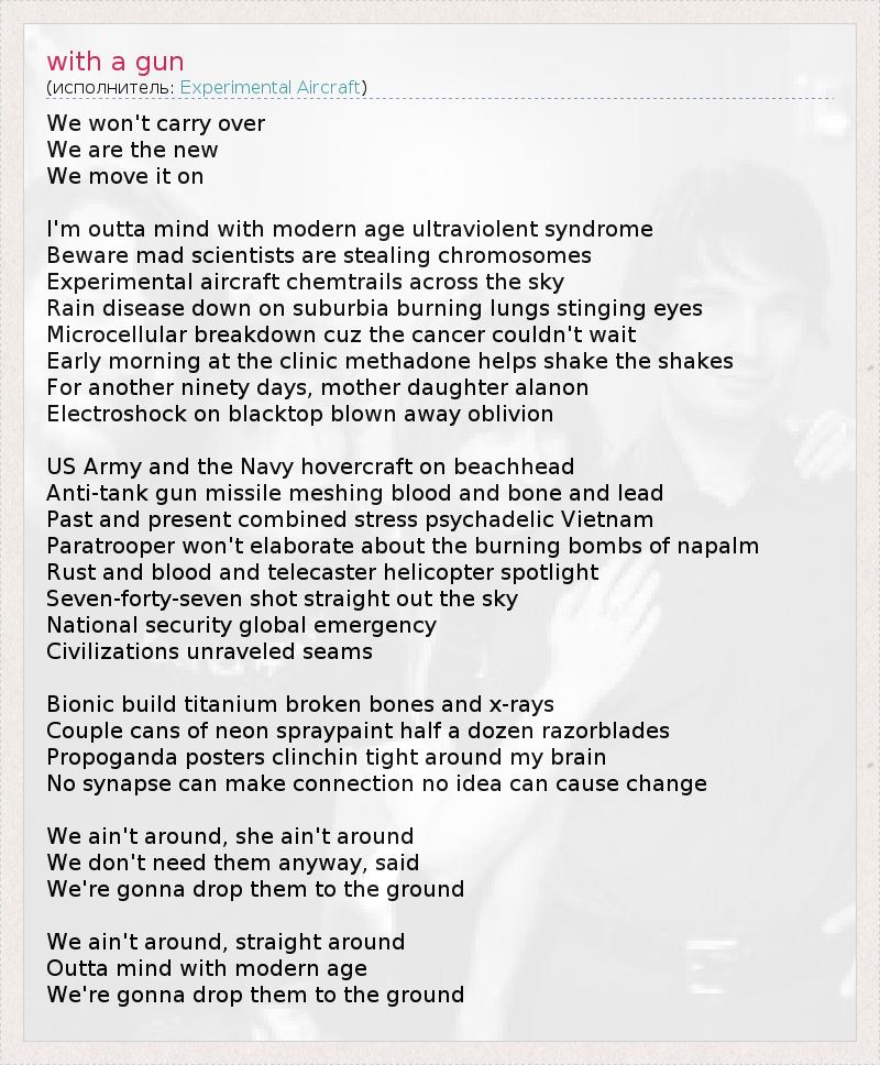 А как ты думаешь, о чем песня "with a gun" ?