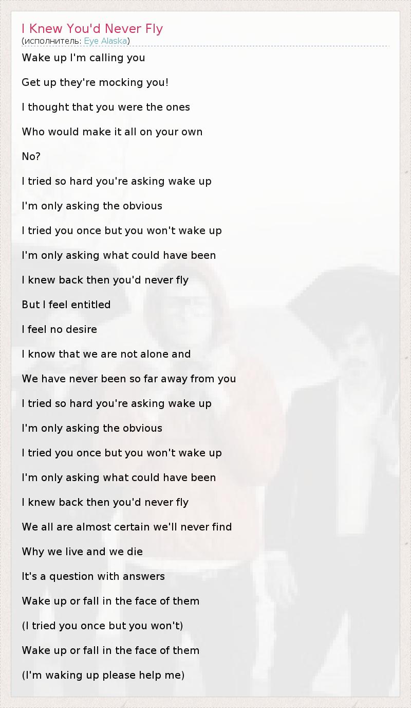 А как ты думаешь, о чем песня "I Knew You'd Never Fly" ?