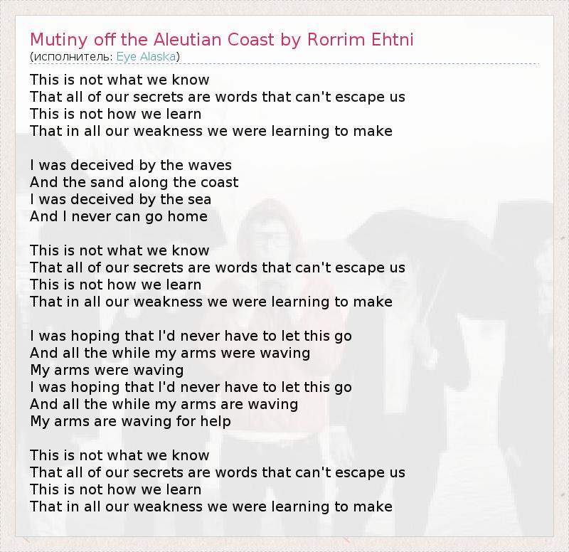 А как ты думаешь, о чем песня "Mutiny off the Aleutian Coast by Rorrim Ehtni" ?