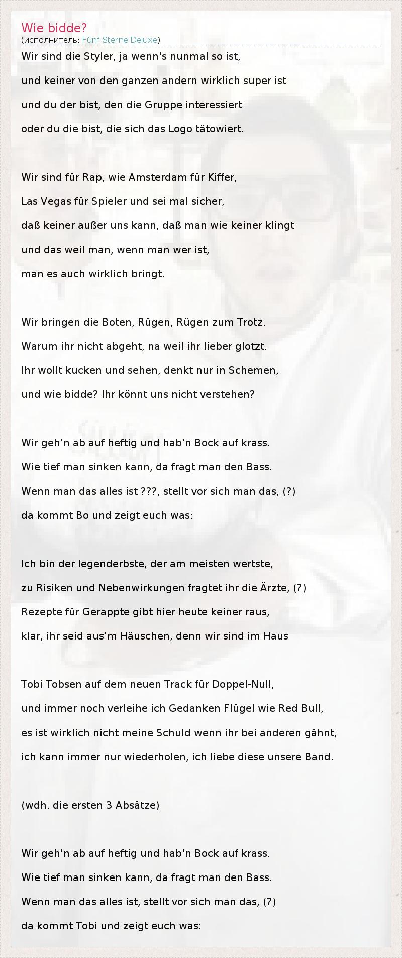 А как ты думаешь, о чем песня "Wie bidde?" ?