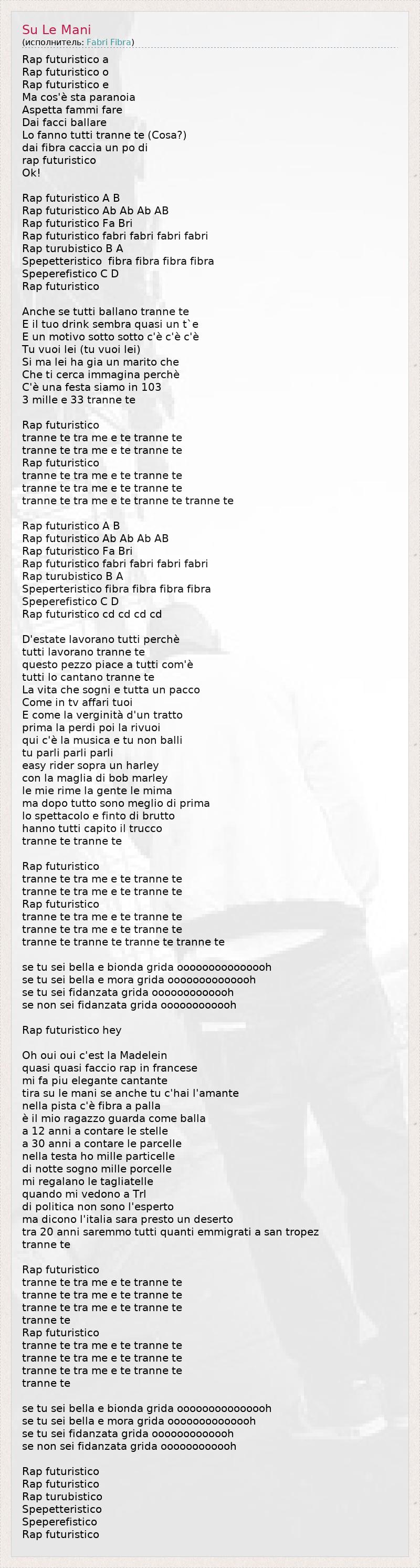 А как ты думаешь, о чем песня "Su Le Mani" ?