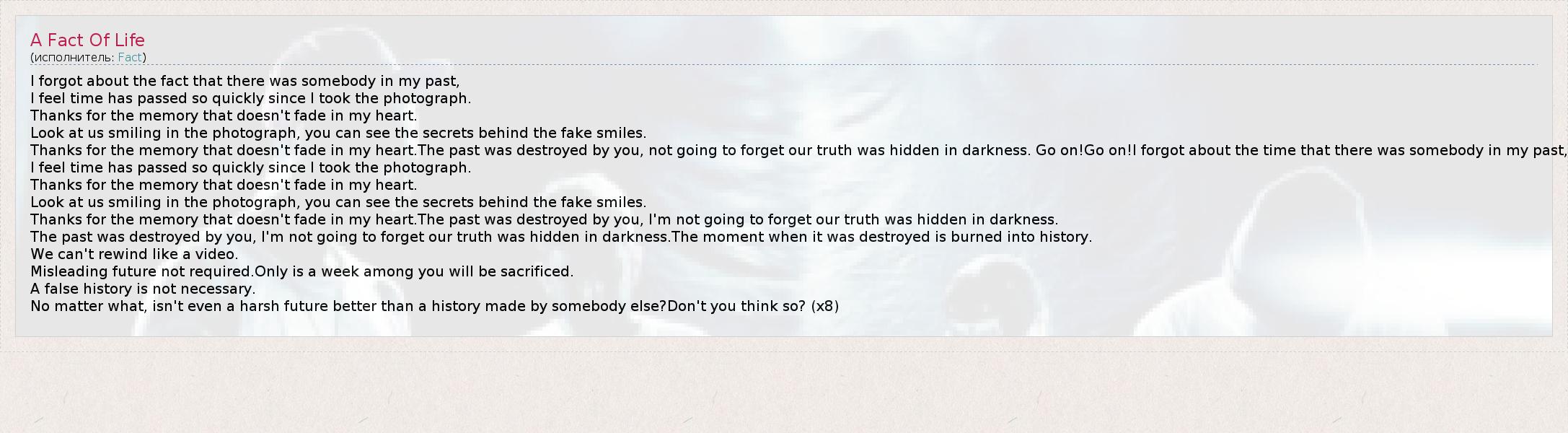 А как ты думаешь, о чем песня "A Fact Of Life" ?