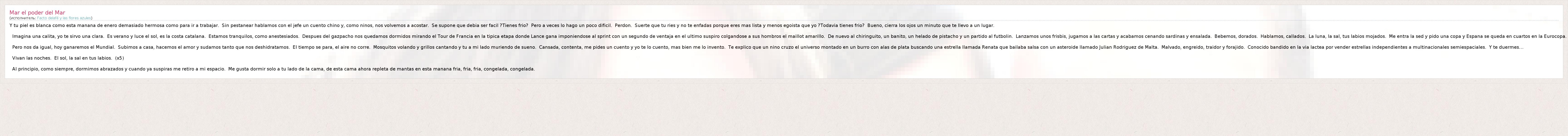 А как ты думаешь, о чем песня "Mar el poder del Mar" ?