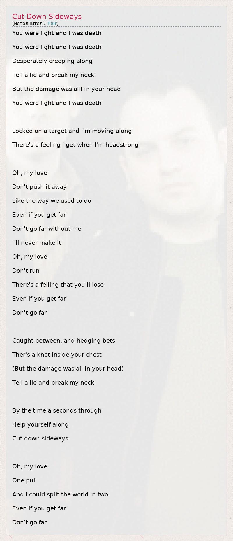 А как ты думаешь, о чем песня "Cut Down Sideways" ?