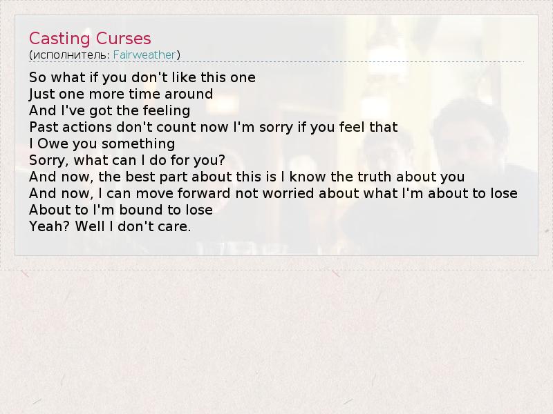 А как ты думаешь, о чем песня "Casting Curses" ?