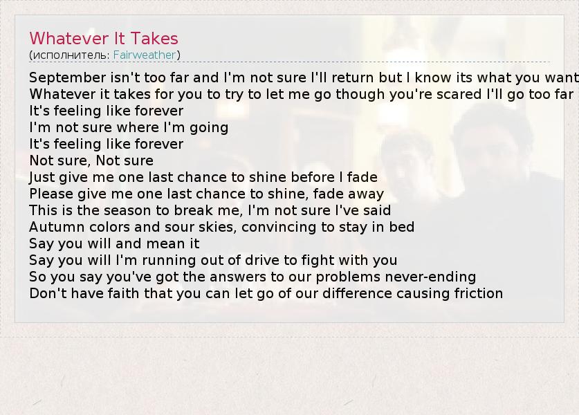 А как ты думаешь, о чем песня "Whatever It Takes" ?