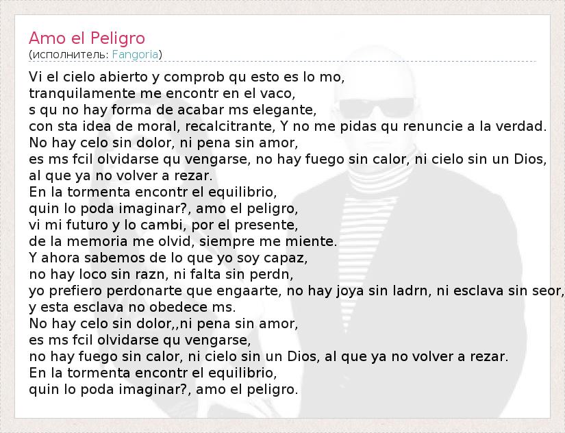 А как ты думаешь, о чем песня "Amo el Peligro" ?