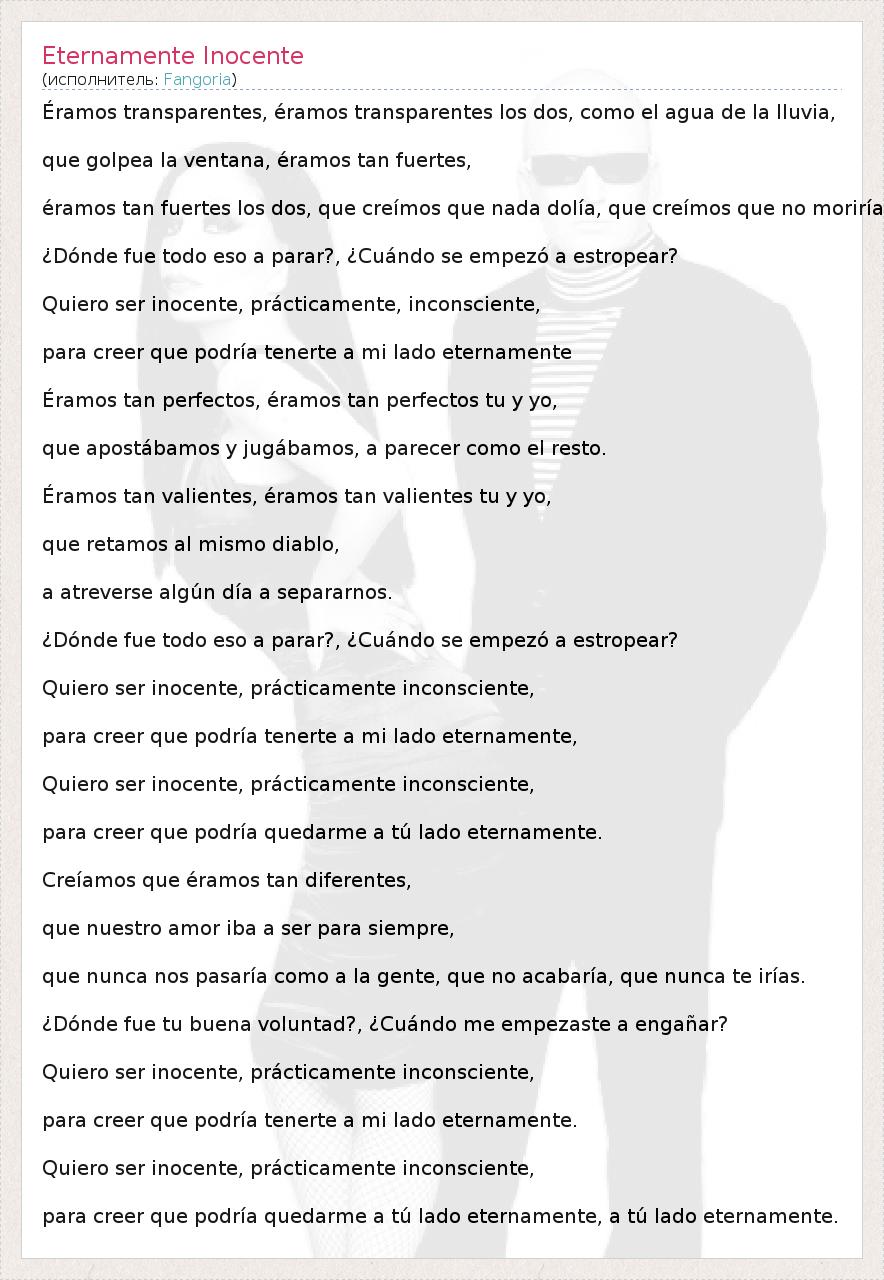 А как ты думаешь, о чем песня "Eternamente Inocente" ?