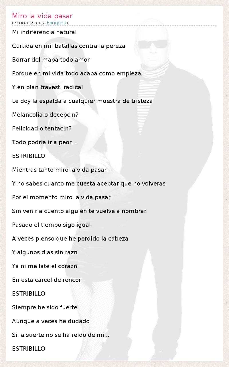 А как ты думаешь, о чем песня "Miro la vida pasar" ?