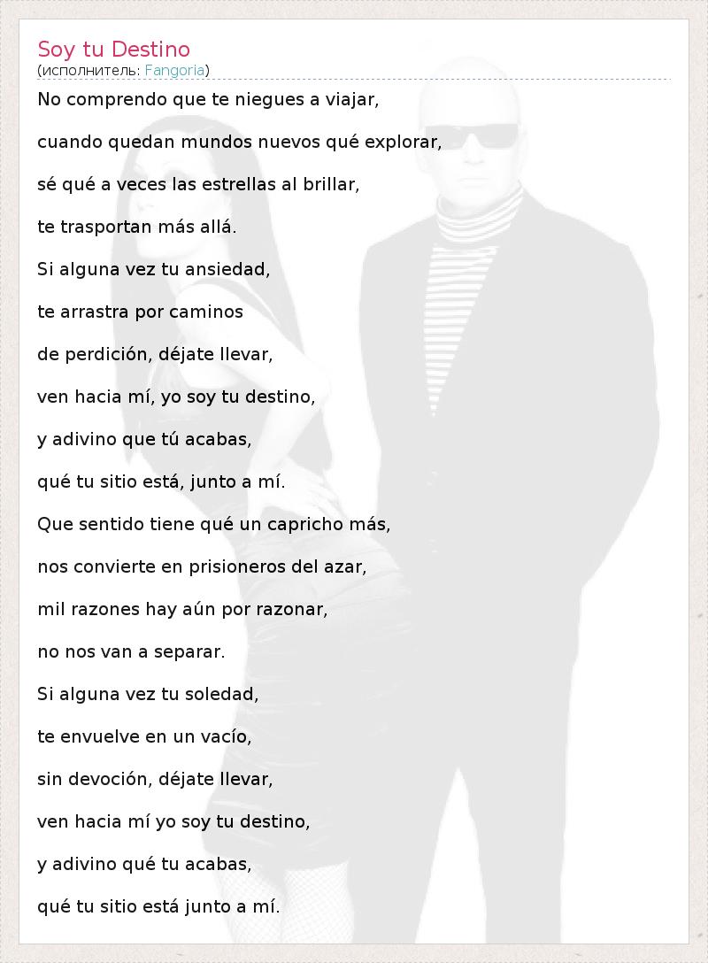 А как ты думаешь, о чем песня "Soy tu Destino" ?