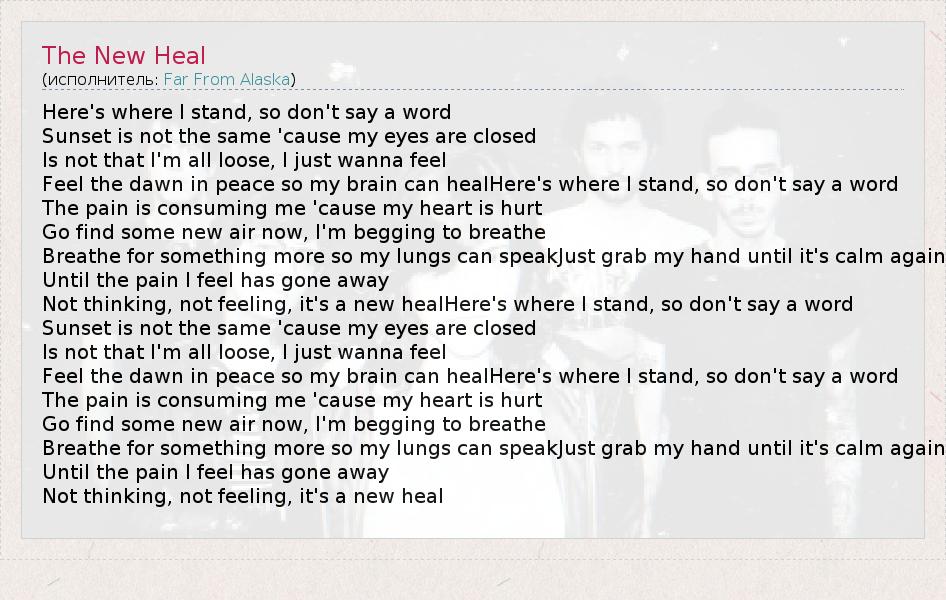 Not thinking, not feeling, it's a new healHere's where I stand, so don't say a word