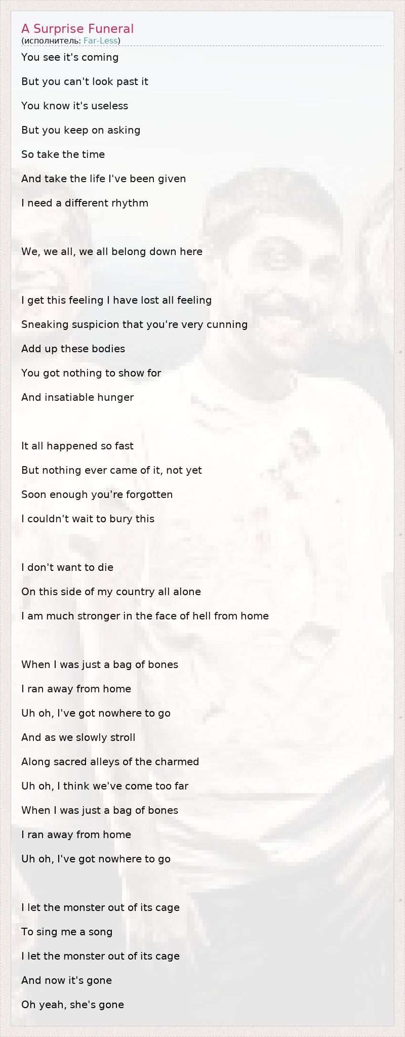 А как ты думаешь, о чем песня "A Surprise Funeral" ?