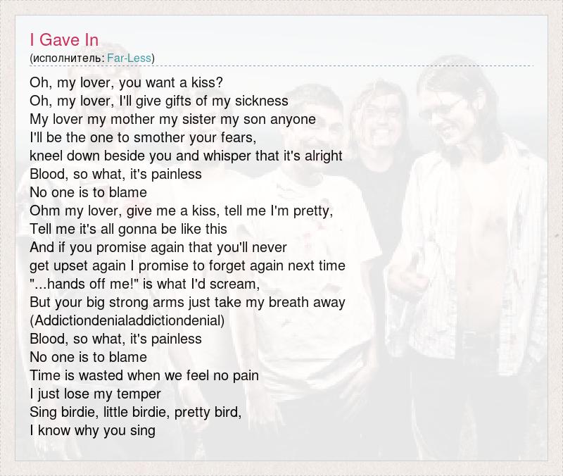 Это интересно:Far-Less is a five-piece indie rock band originally from Marion, Virginia. They are signed to Tooth & Nail Records. Far-less is currently writing and recording an EP of re-imagined songs for release in the spring of '09.Current line-up:Brandon Welch - lead vocals, guitarPhilip Jordan Powers - guitar, vocalsBrandon Hackler - guitarTyler Joel Hill - drumsBrian Freeman - bassFormer members:Jacob Murray - guitar (2001-2002)Ray Felts - drums (2001-2006)Joseph Powers - bass (2001-2007)Todd Turner - drums (2006-2008)Elizabeth "Bitsy" Pina - keyboard (2007-2008)Mark Karsten - guitar (2003-2008)... продолжение