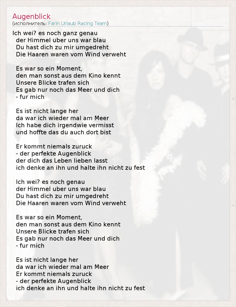 А как ты думаешь, о чем песня "Augenblick" ?