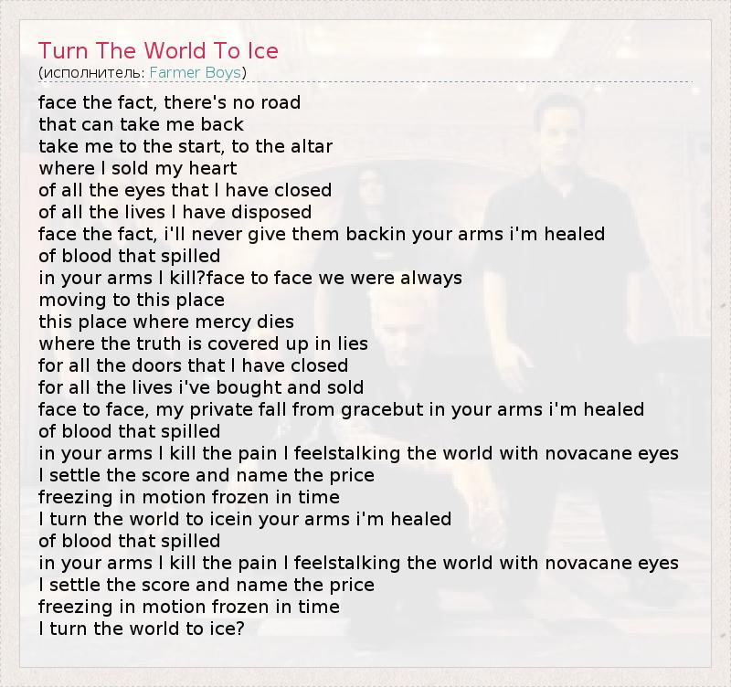 А как ты думаешь, о чем песня "Turn The World To Ice" ?