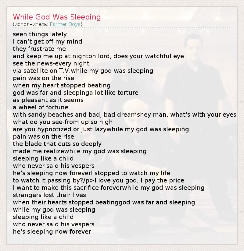 А как ты думаешь, о чем песня "While God Was Sleeping" ?