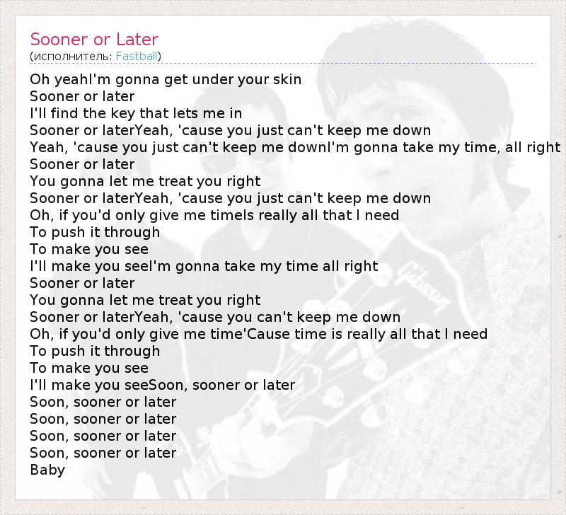 А как ты думаешь, о чем песня "Sooner or Later" ?