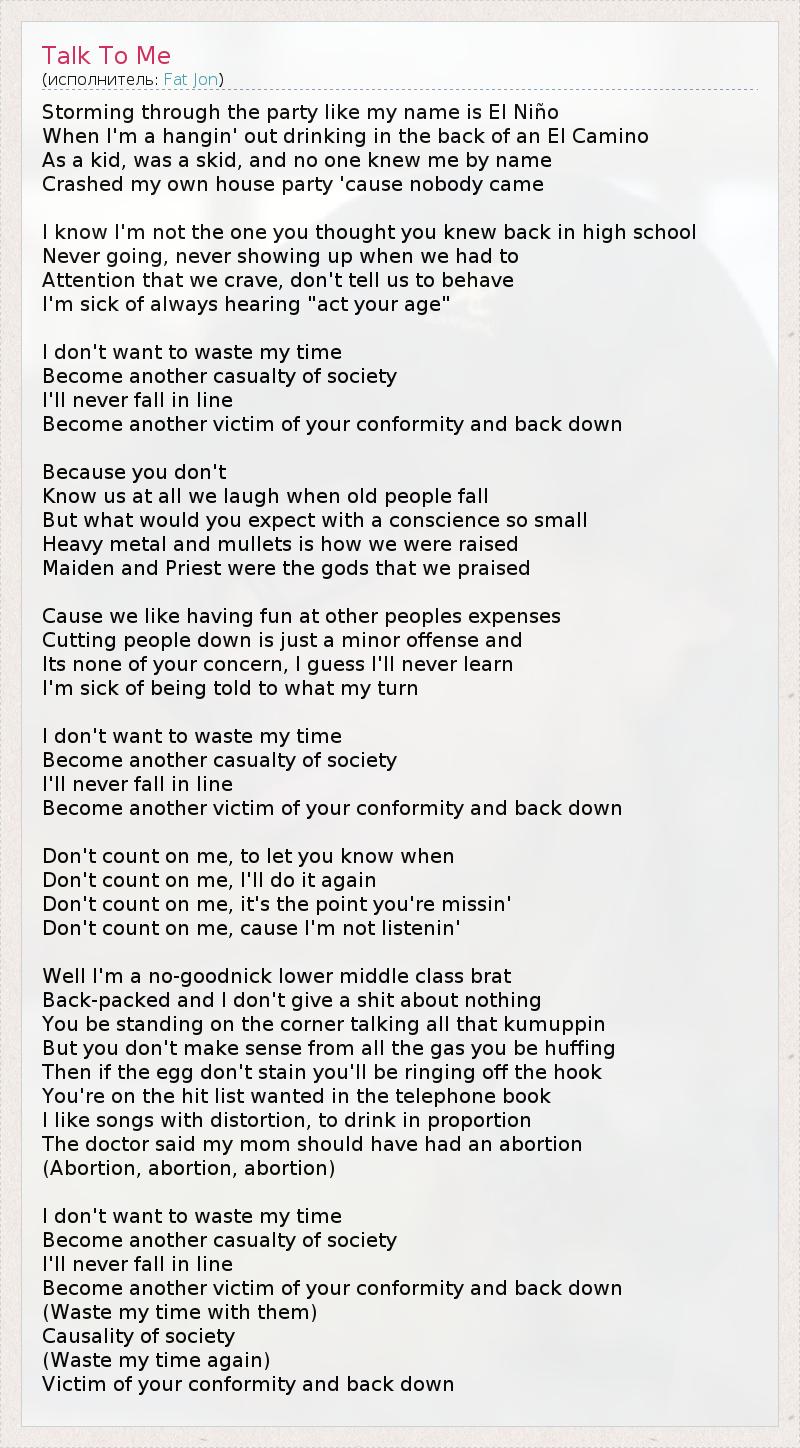 А как ты думаешь, о чем песня "Talk To Me" ?