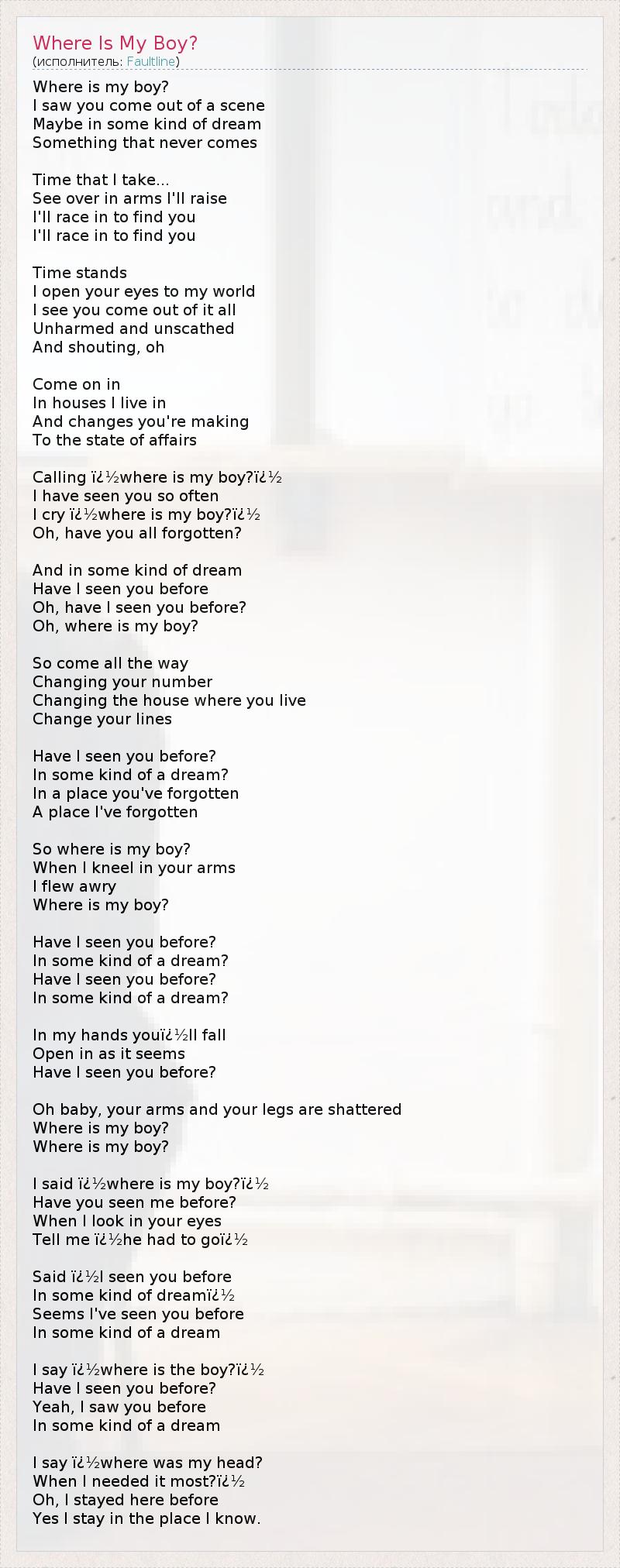 А как ты думаешь, о чем песня "Where Is My Boy?" ?