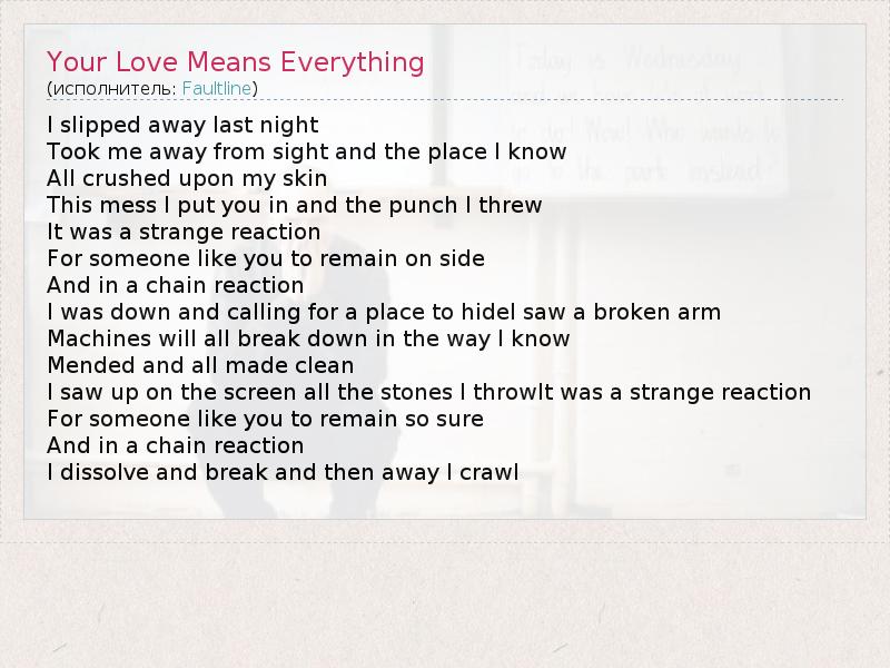 А как ты думаешь, о чем песня "Your Love Means Everything" ?