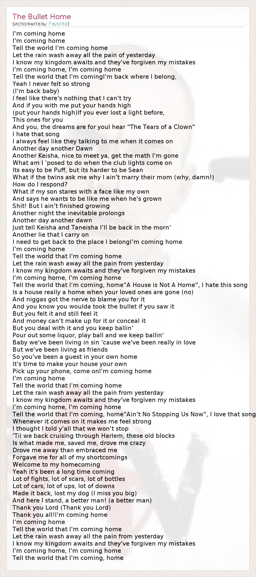 I'm coming home, I'm coming home