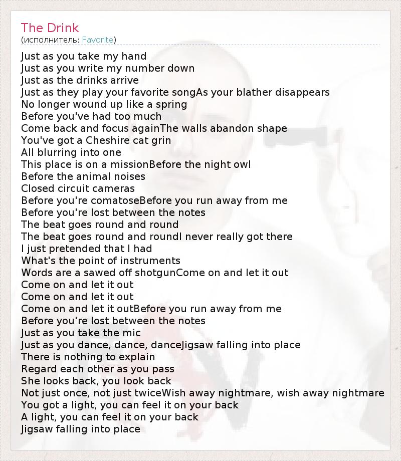А как ты думаешь, о чем песня "The Drink" ?