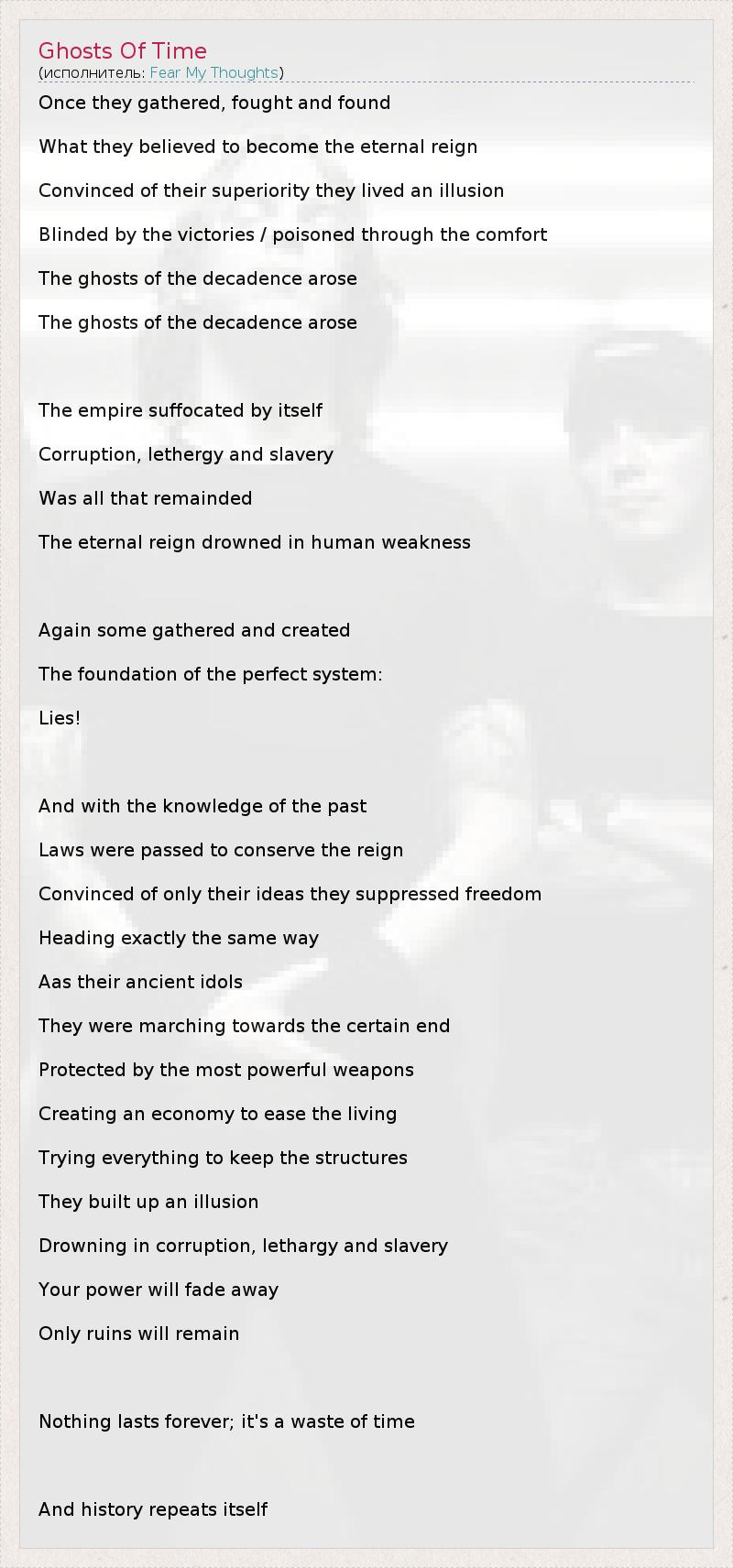 А как ты думаешь, о чем песня "Ghosts Of Time" ?