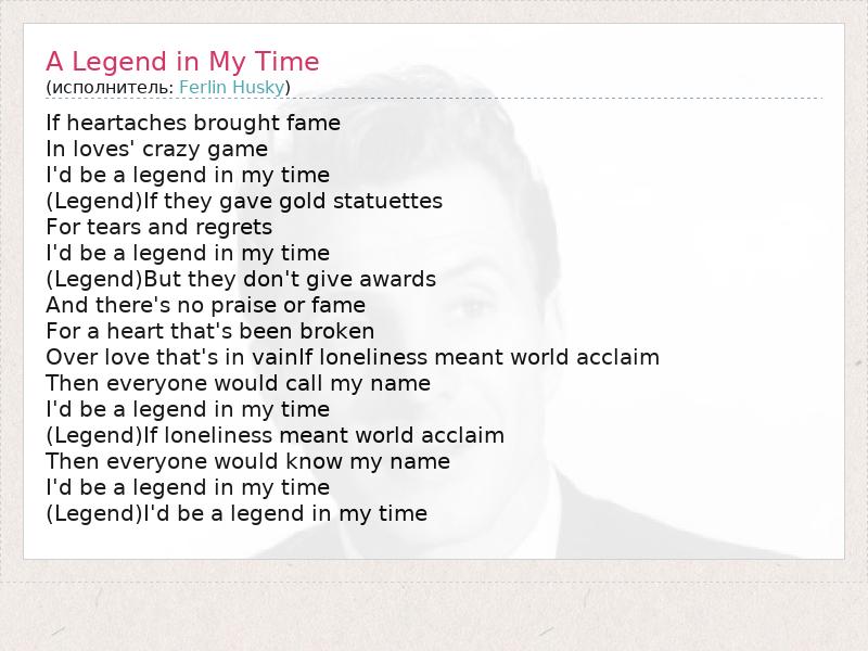 А как ты думаешь, о чем песня "A Legend in My Time" ?