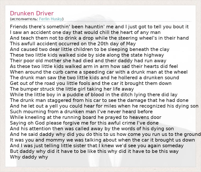 А как ты думаешь, о чем песня "Drunken Driver" ?