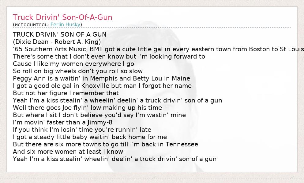 ГлавнаяИсполнителиFerlin HuskyTruck Drivin' Son-Of-A-Gun