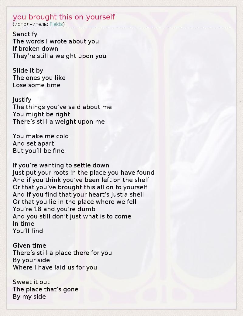 ГлавнаяИсполнителиFieldsyou brought this on yourself