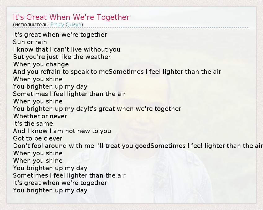ГлавнаяИсполнителиFinley QuayeIt's Great When We're Together