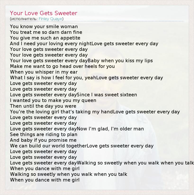 А как ты думаешь, о чем песня "Your Love Gets Sweeter" ?